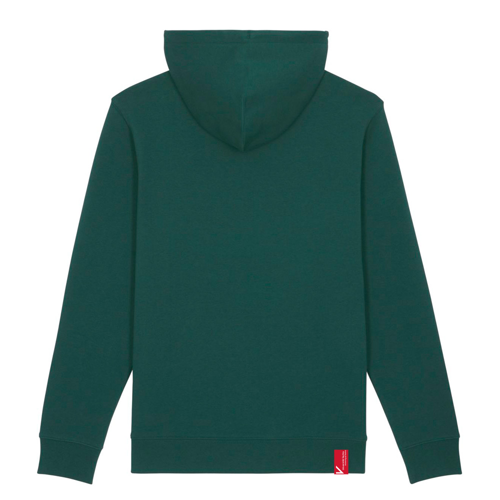 Legerer Kapuzenpulli für Sie und Ihn, in der Farbe Grün. Fair produziert und hochwertig verarbeitet.
